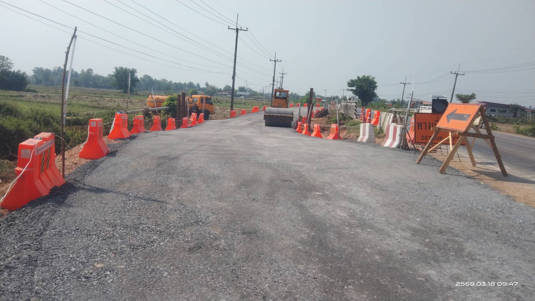 เบี่ยงการจราจรชั่วคราว กิจกรรมงานพัฒนาสะพานและระบบระบายน้ำ ทางหลวงหมายเลข 2348 ตอน บ้านผือ – น้ำซึม ที่ กม. 12+491