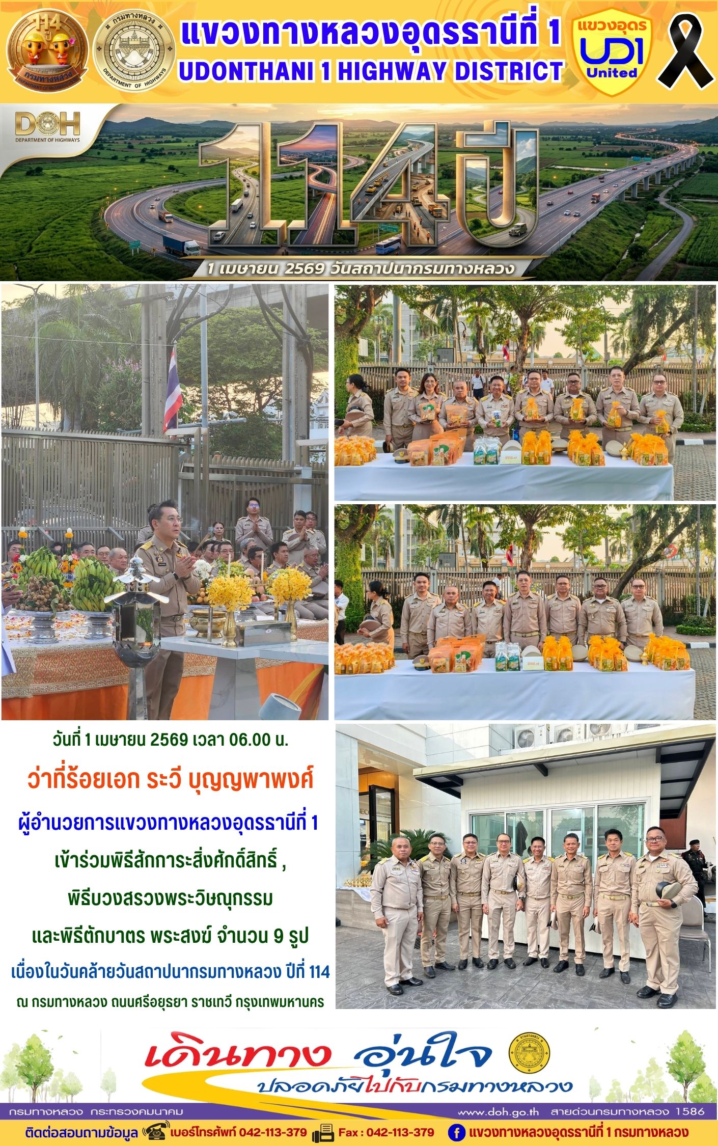 เนื่องในวันคล้ายวันสถาปนากรมทางหลวง ปีที่ 114