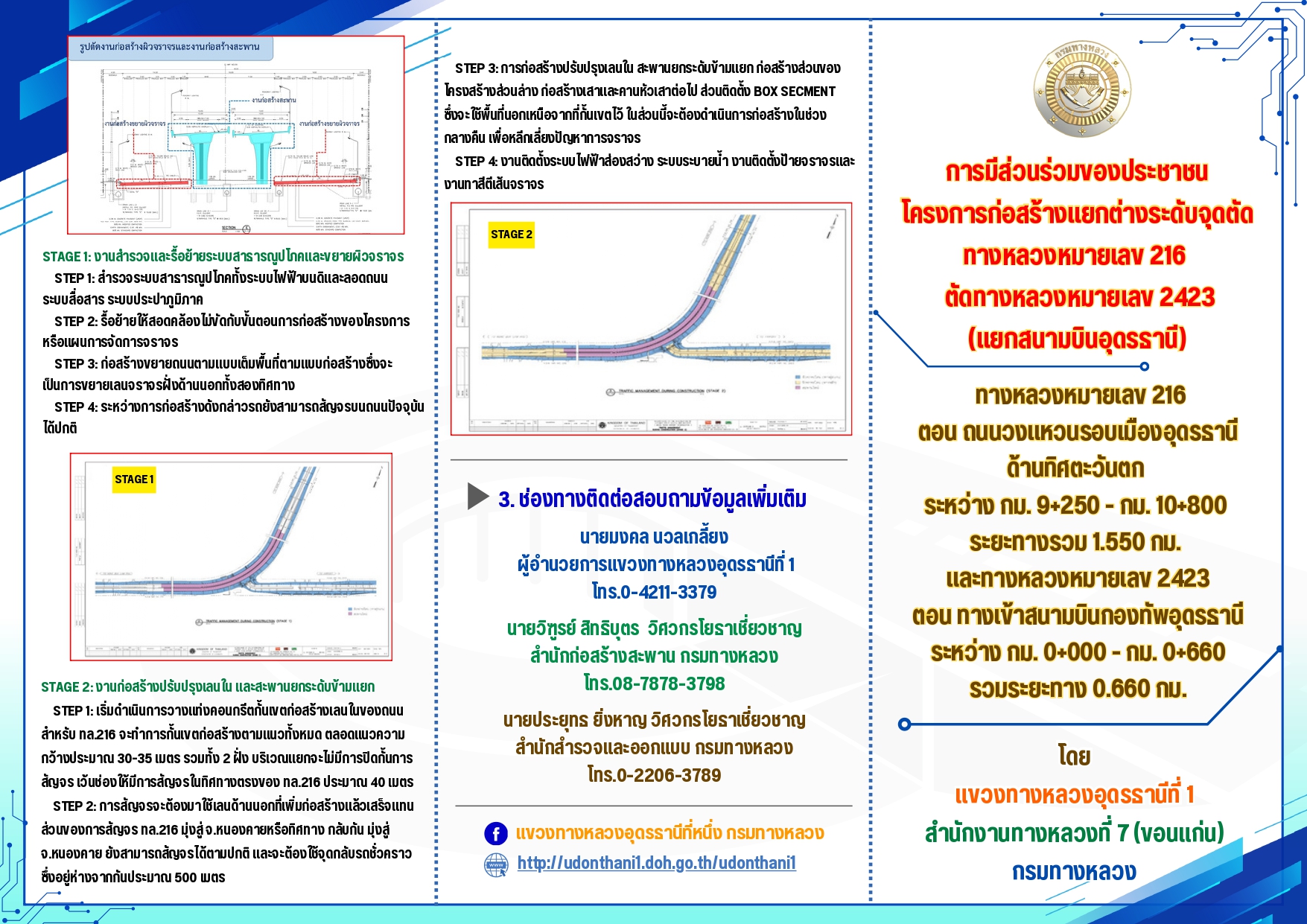 ขอเชิญประชาชนทุกท่านเข้าร่วมประชุม โครงก?ารประชุมการมีส่วนร่วมของประชาชน โครงการก่อสร้างทางแยกต่างระดับจุดตัดทางหลวงหมายเลข 216 ตัดทางหลวงหมายเลข 2423 (แยกสนามบินอุดรธานี)