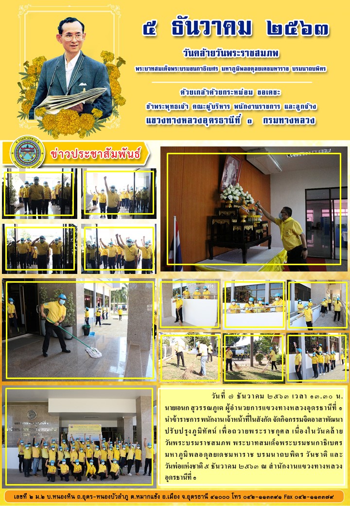 กิจกรรมจิตอาสาพัฒนาปรับปรุงภูมิทัศน์ เพื่อถวายพระราชกุศล เนื่องในวันคล้าย วันพระบรมราชสมภพ พระบาทสมเด็จพระบรมชนกาธิเบศร มหาภูมิพลอดุลยเดชมหาราช บรมนาถบพิตร วันชาติ และ วันพ่อแห่งชาติ ๕ ธันวาคม ๒๕๖๓