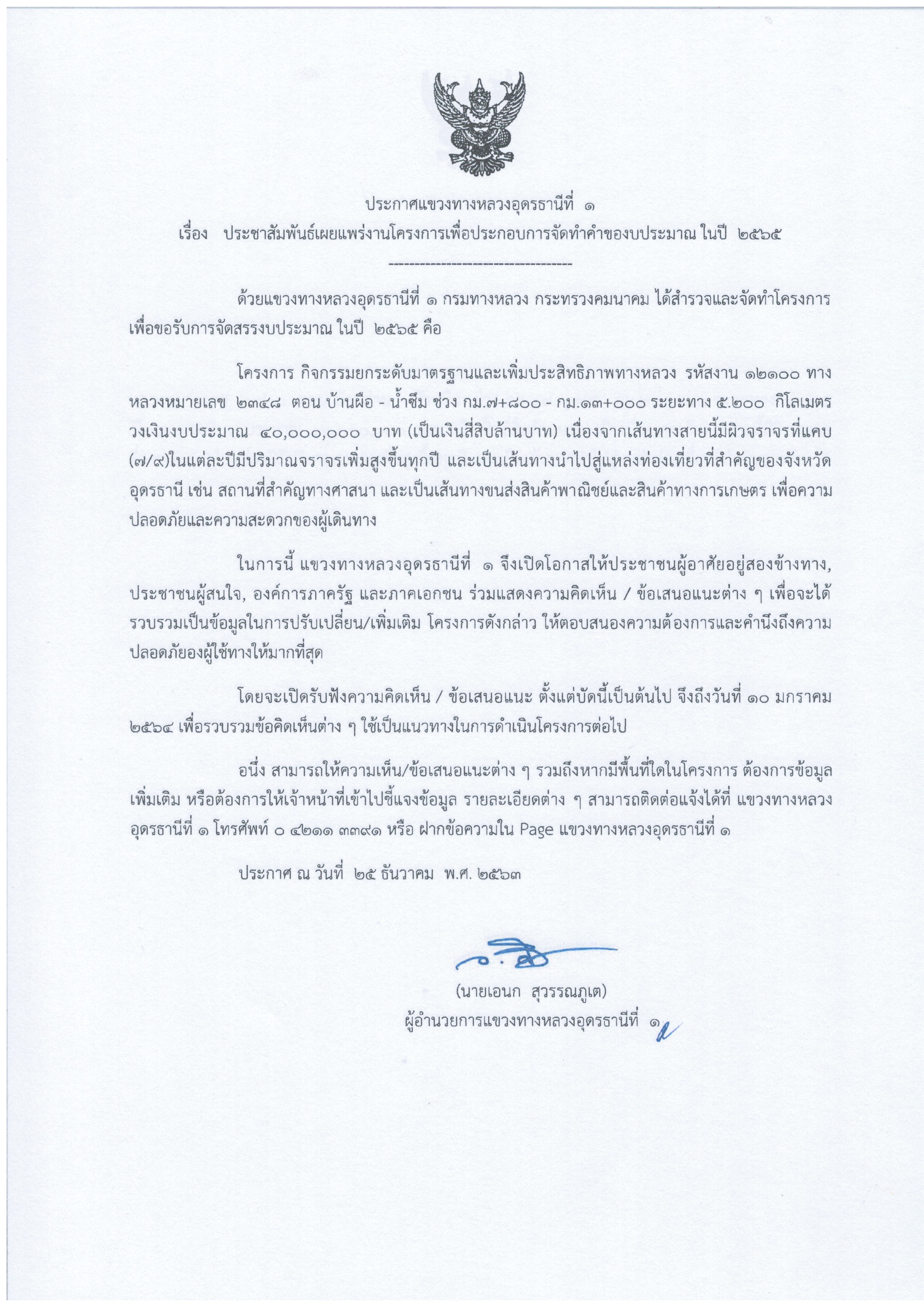 ข่าวประชาสัมพันธ์ แขวงทางหลวงอุดรธานีที่ 1