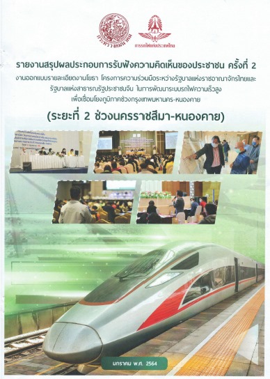 รายงานสรุปผลการรับฟังความคิดเห็นของประชาชน ครั้งที่ 2 งานออกแบบรายละเอียด งานโยธาโครงการความร่วมมือระหว่างรัฐบาลแห่งราชอาณาจักรไทยและรัฐบาลแห่งสาธารณรัฐประชาชนจีน ในพัฒนาระบบไฟความเร็วสูงเพื่อเชื่อมโยงภูมิภาคช่วงกรุงเทฑมหานคร-หนองคาย (ระยะที่ 2 ช่วงนครราชสีมา-หนองคาย)