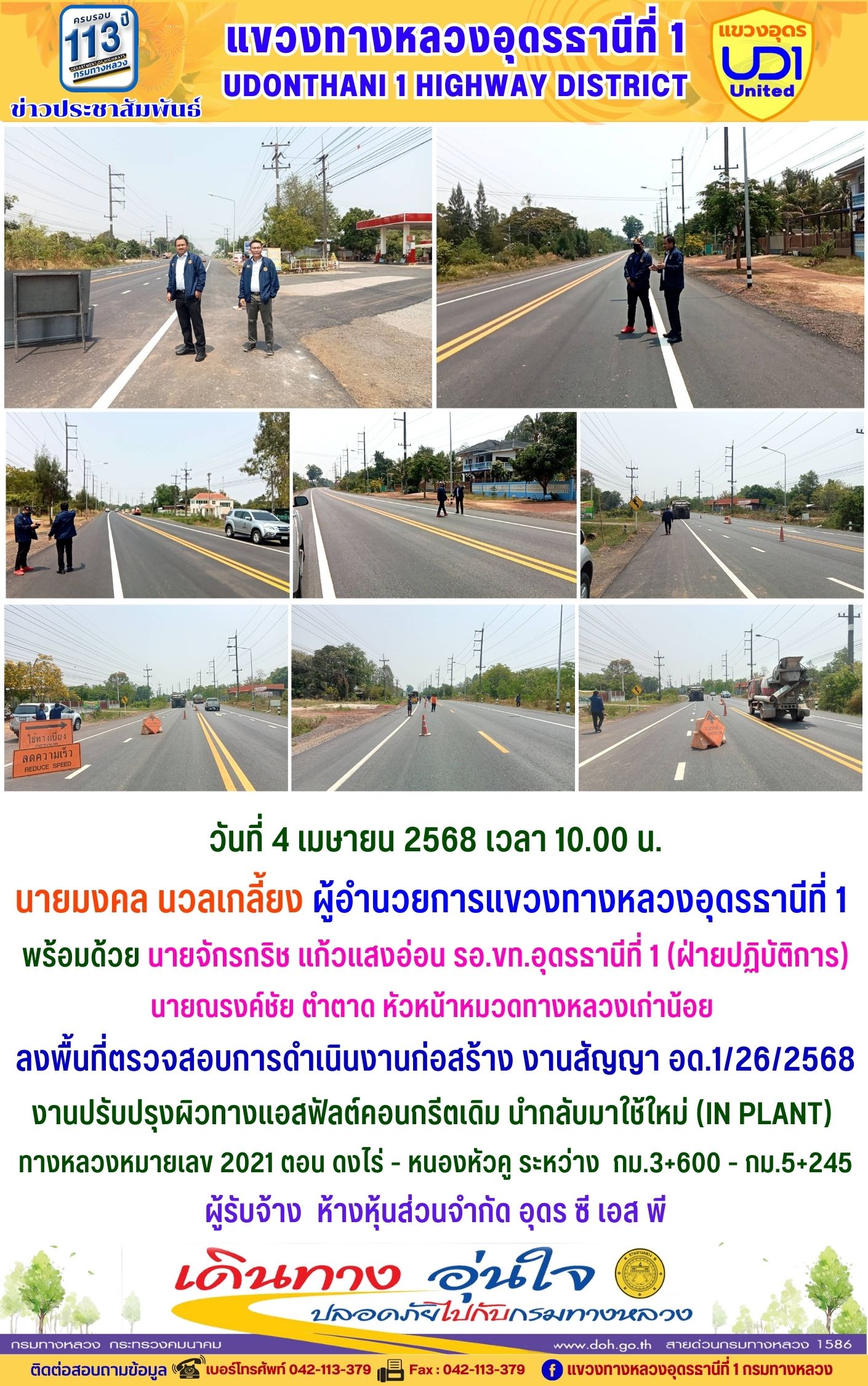 ข่าวประชาสัมพันธ์ แขวงทางหลวงอุดรธานีที่ 1