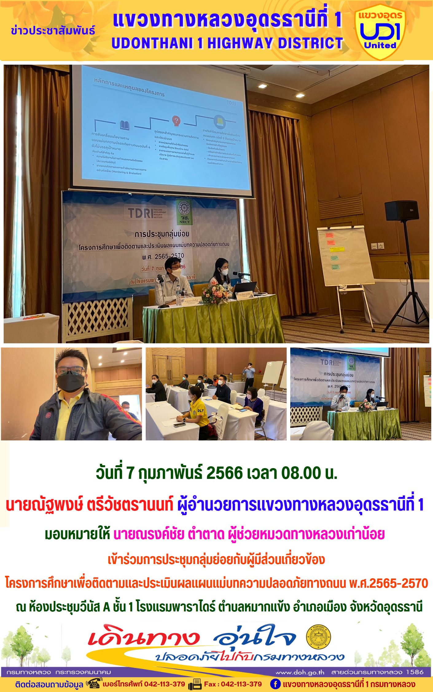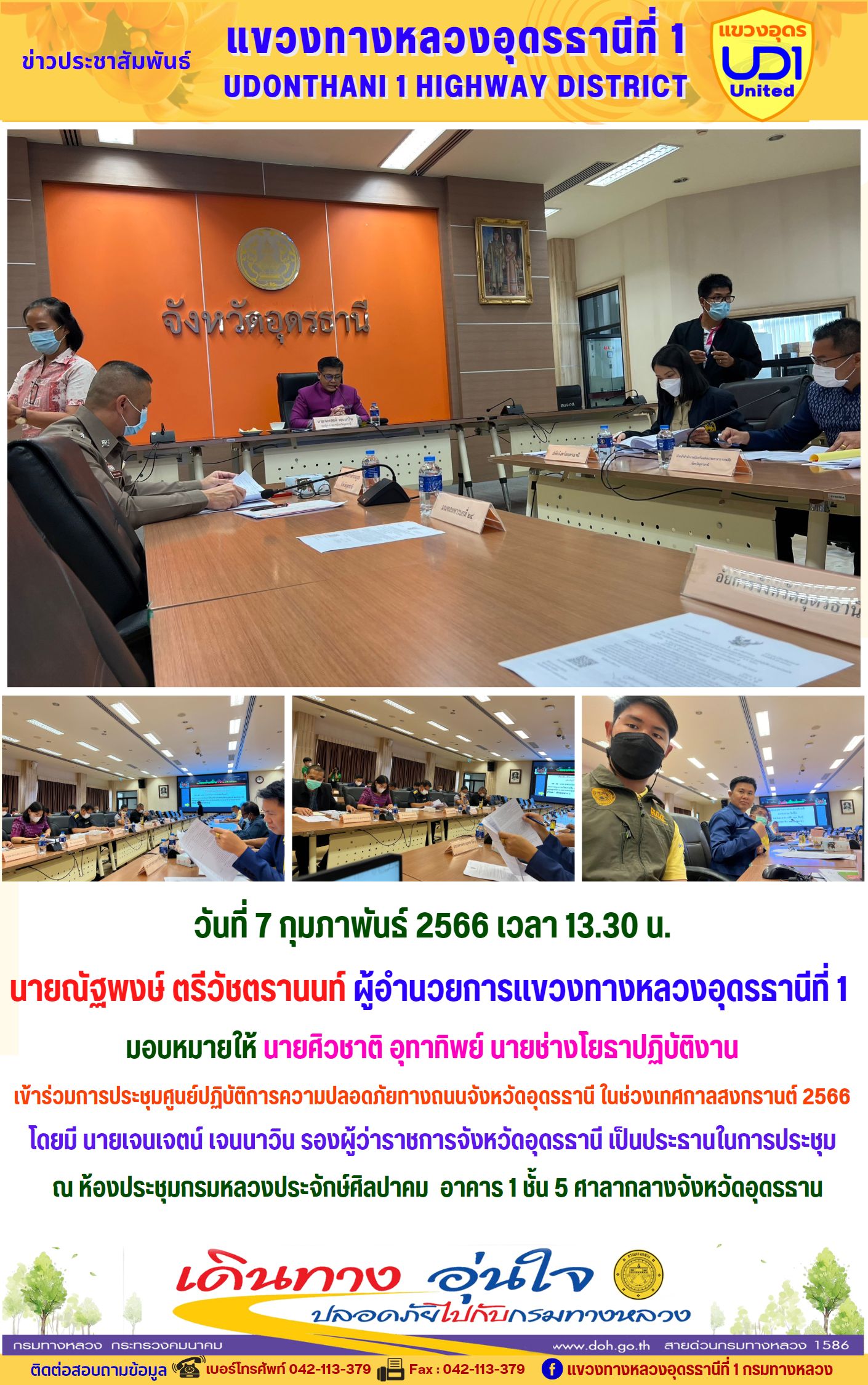 #ข่าวประชาสัมพันธ์ #กระทรวงคมนาคม #กรมทางหลวง #สำนักทางหลวงที่7 (ขอนแก่น) #แขวงทางหลวงอุดรธานีที่1 #อุดรธานี #นายณัฐพงษ์ตรีวัชตรานนท์ วันที่ 3 กุมภาพันธ์ 2566