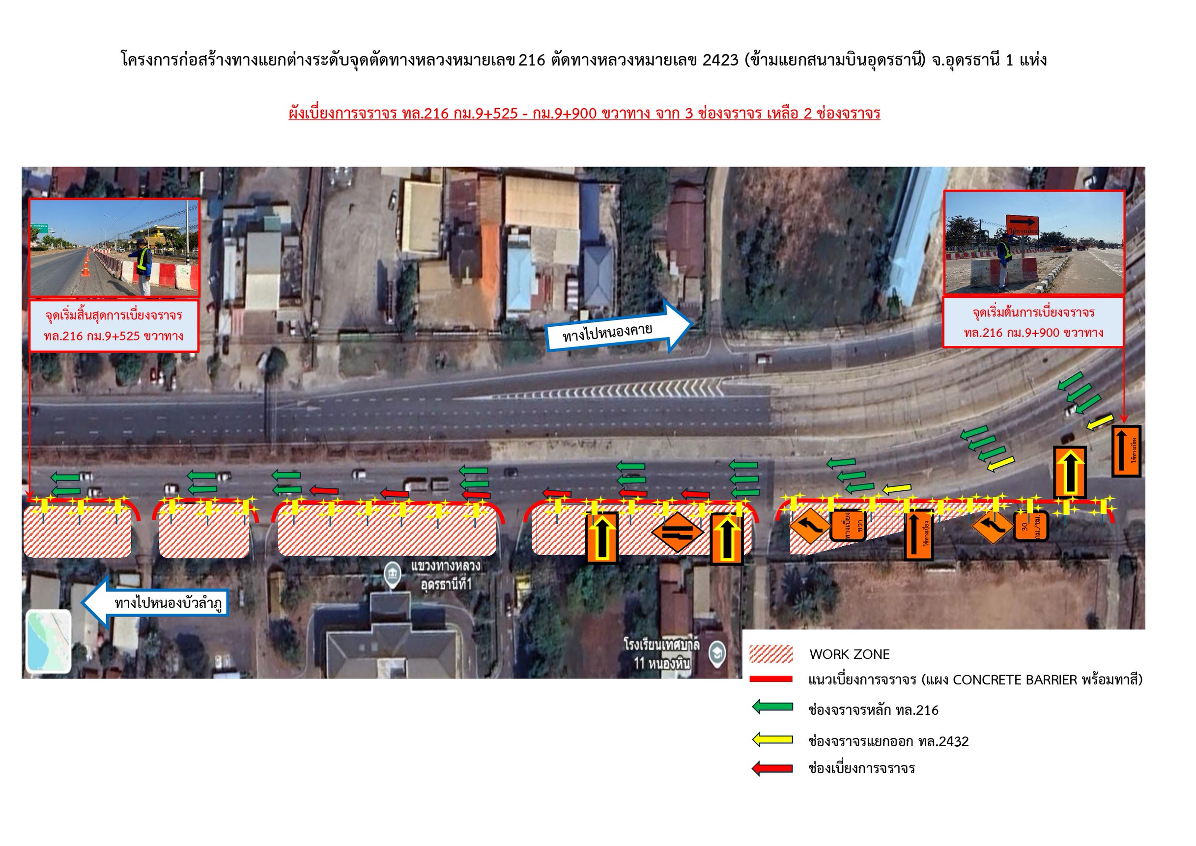 เบี่ยงการจราจร ทางหลวงหมายเลข 216 ตอน ถนนวงแหวนรอบเมืองอุดรธานีด้านทิศตะวันตก กม.9+525 - กม.9+900 ขวาทาง
